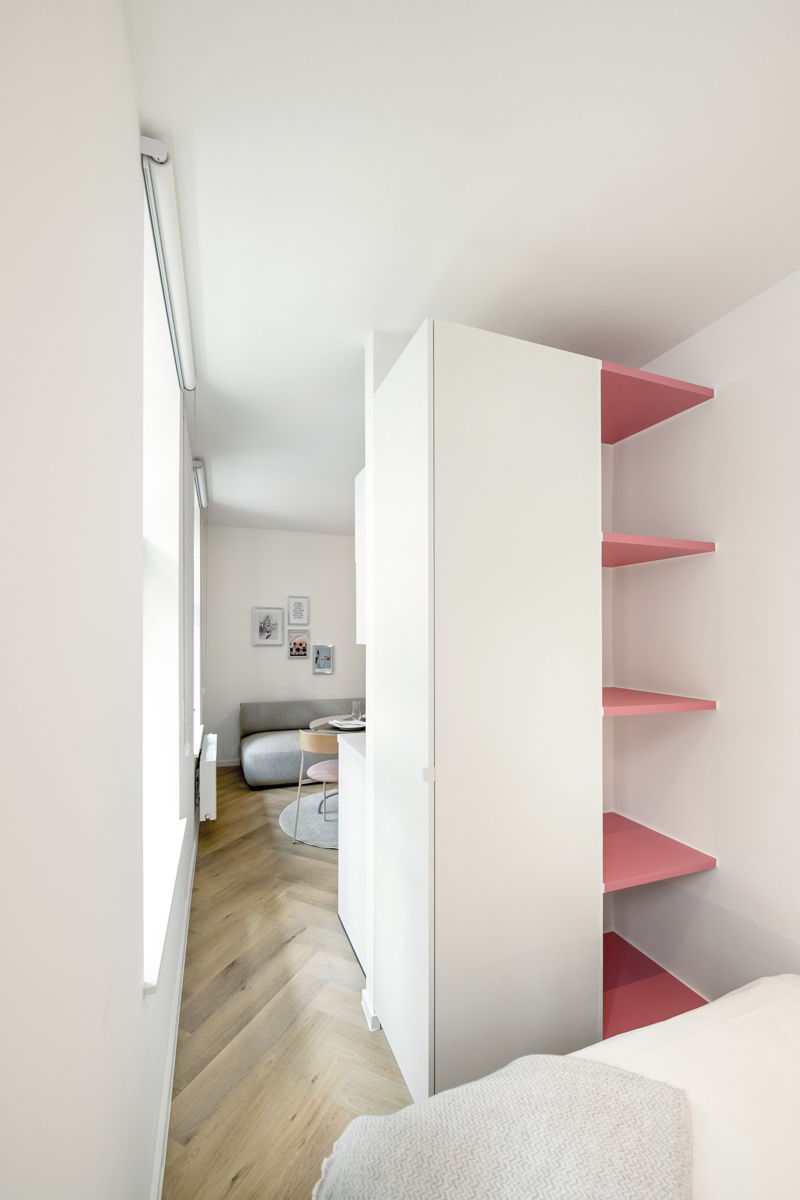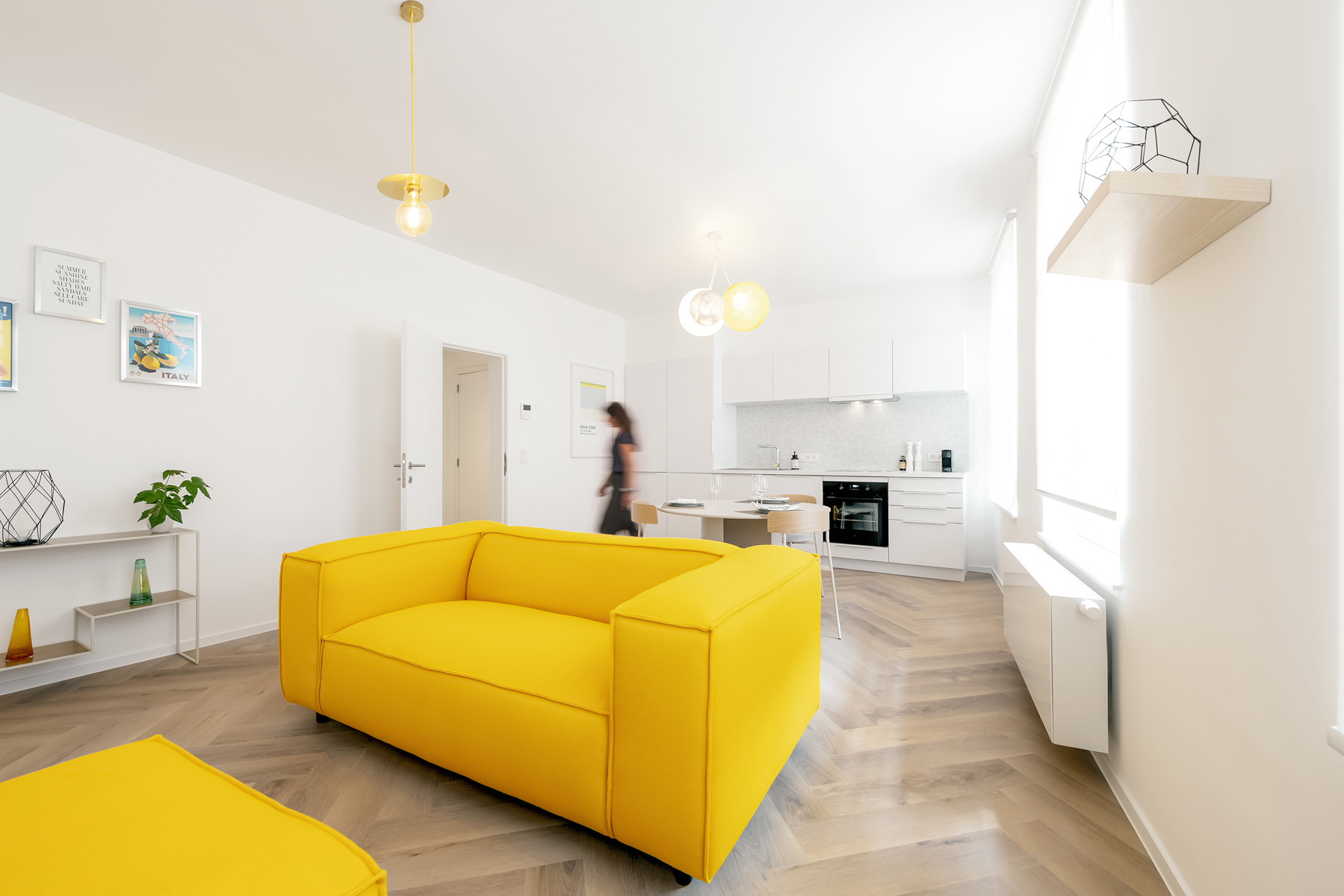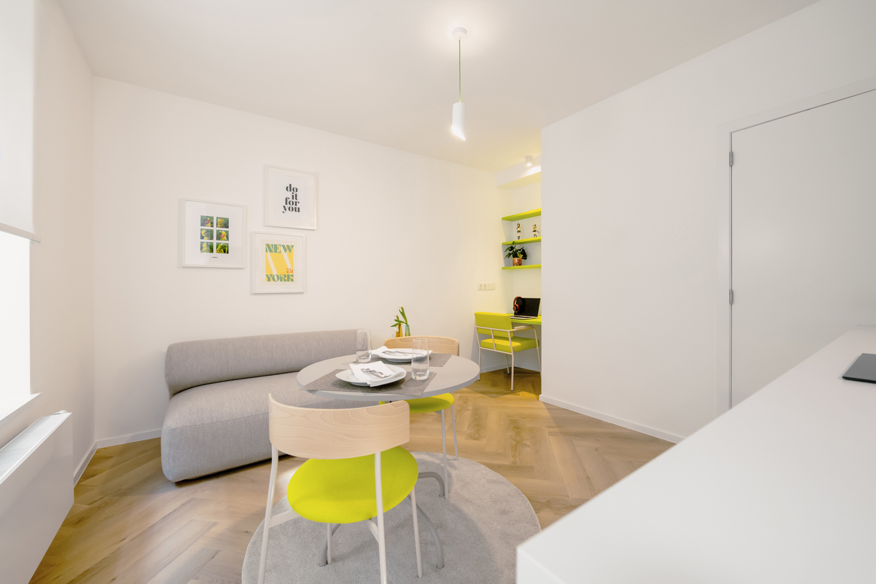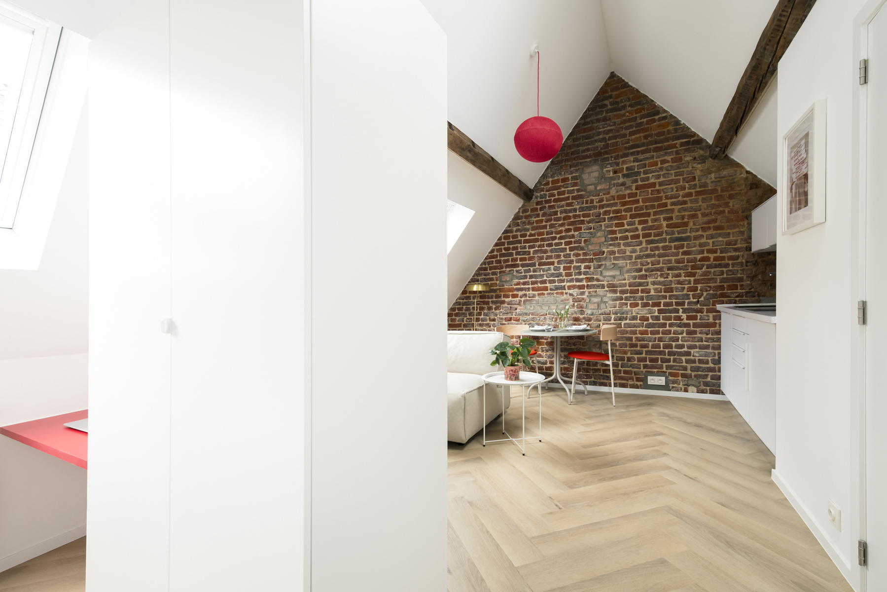 Quartier Blaes, à quelques pas du cœur historique de Bruxelles, ce projet a consisté en la remise à neuf complète de l’immeuble et de ses 6 unités réparties sur 3 niveaux entre studio et appartement 1 chambre au design colorés et moderne. Les appartement sont vendus meublés.