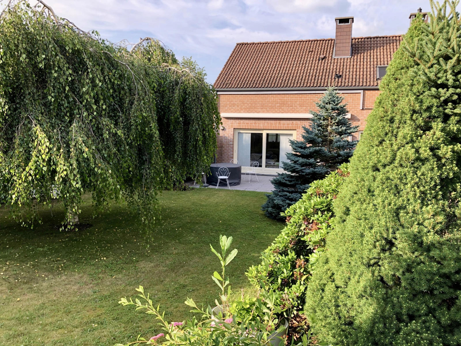 Le jardin clôturé est orienté au sud-ouest, entouré de haies vives et planté de plusieurs essences d’arbres. En annexe de la maison, un grand garage mitoyen bétonné avec petit grenier de rangement (dont l’accès peut se faire directement du jardin) ainsi que deux emplacements de parking sur l’avant de la maison.