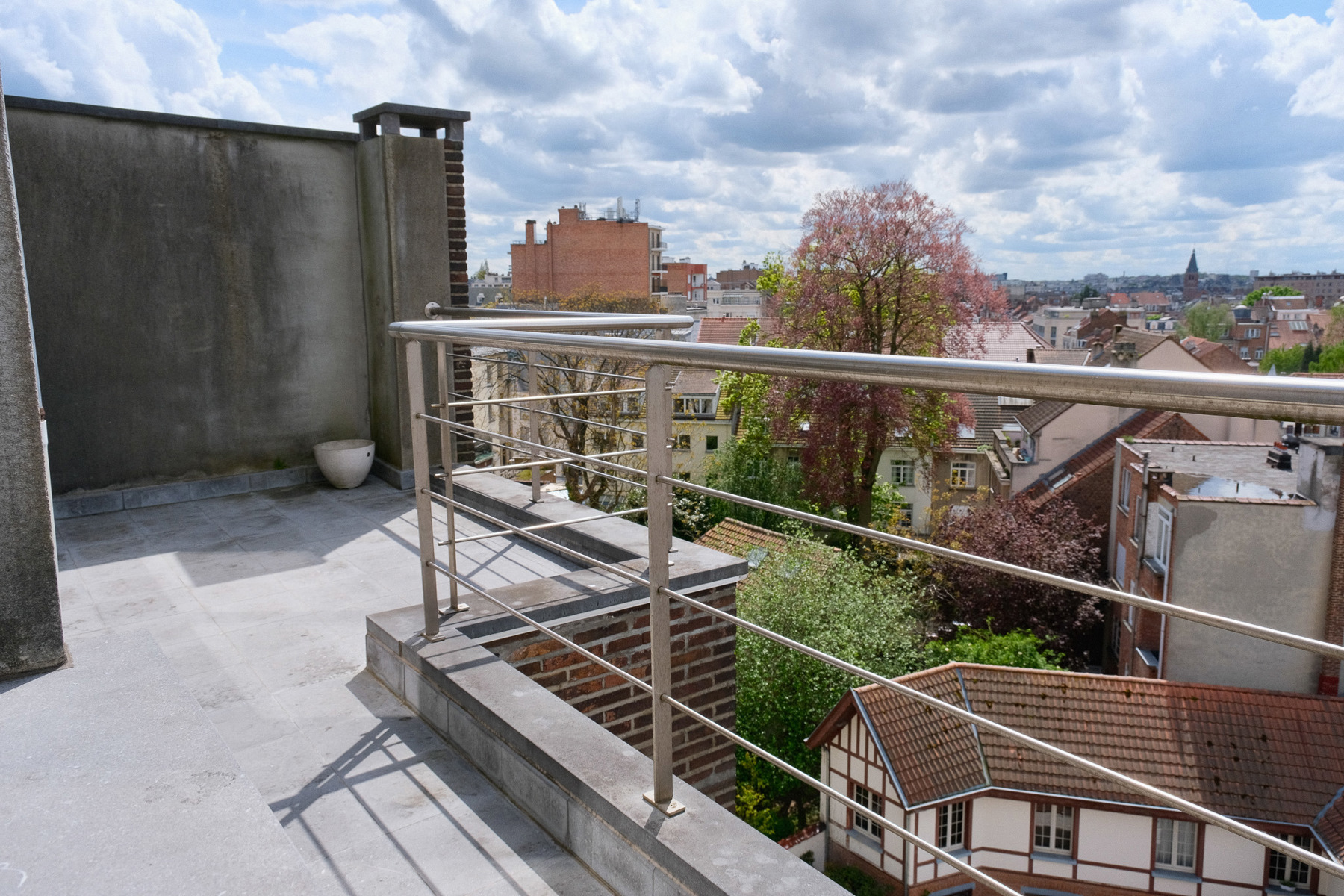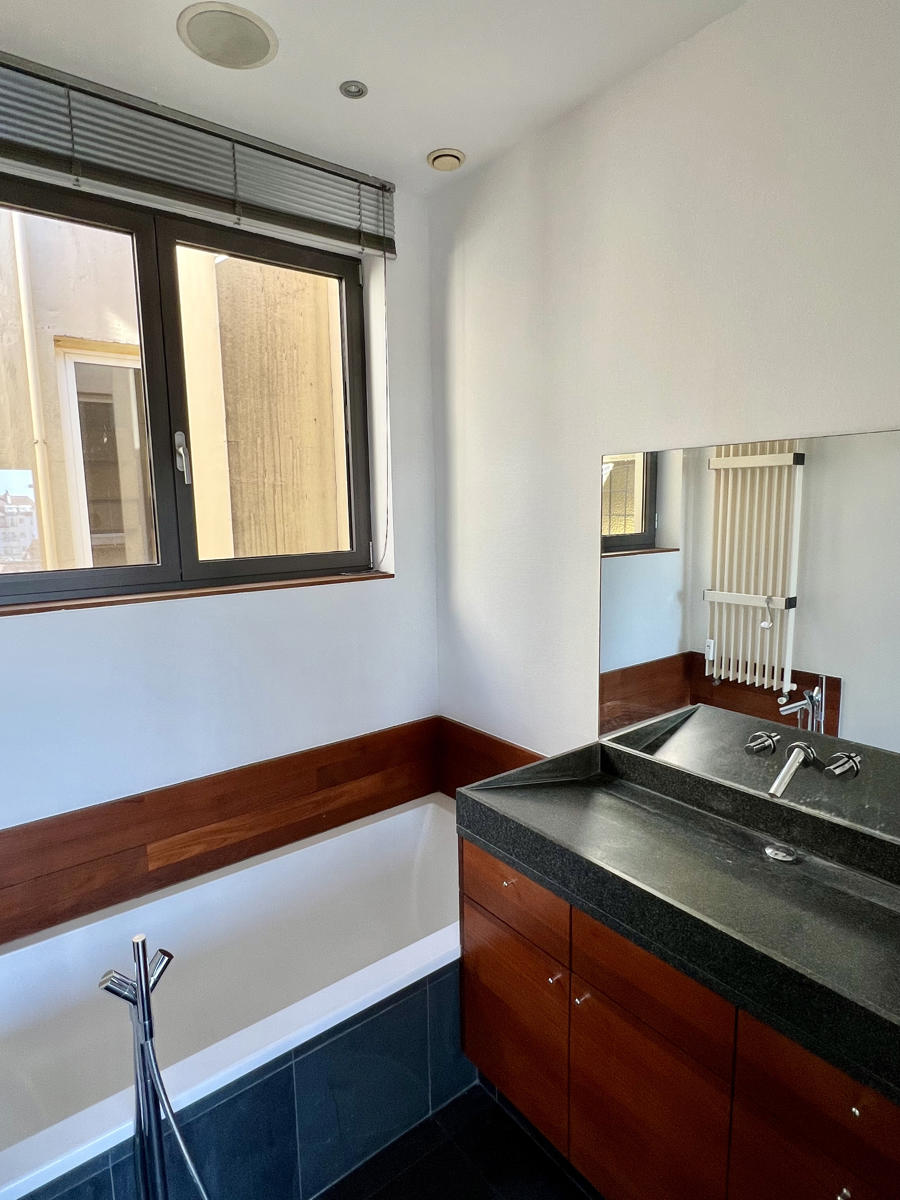 Au cinquième étage : le salon, salle à manger avec feu ouvert, la cuisine américaine super équipée, une buanderie, toilette séparée, chambre de ±26m² avec dressing (ou deuxième chambre), salle de bain et terrasse.Au sixième niveau: second living et pièce de vie (±43m²), une pièce supplémentaire pouvant être utilisée comme cuisine ( a réaménager) bureau, salle télé ou chambre d’amis, toilette séparée, chambre principale (± 22m²) avec dressing (ou deuxième chambre), salle de bain en suite et terrasse de ± 10m² orientée Sud-Ouest.