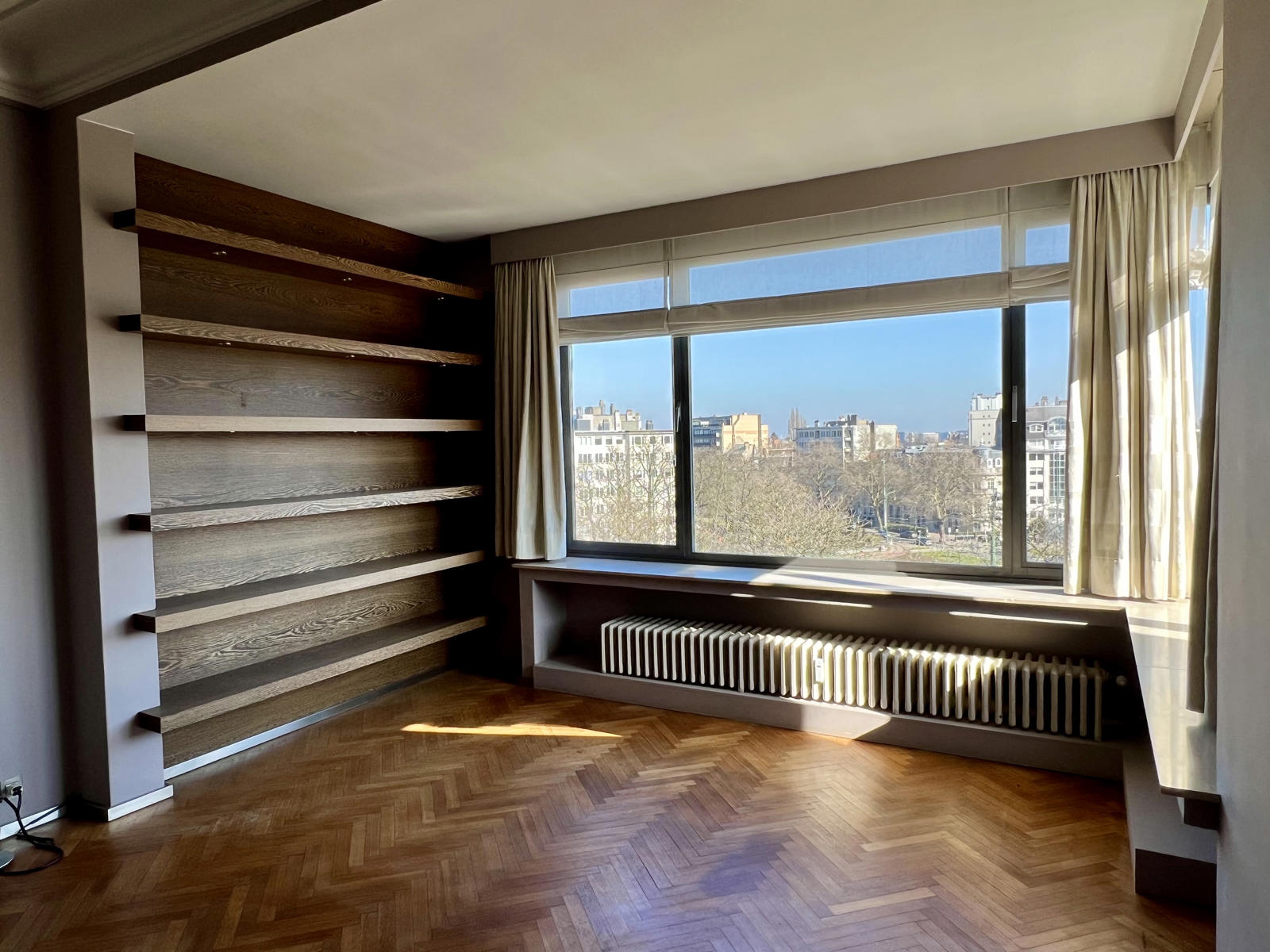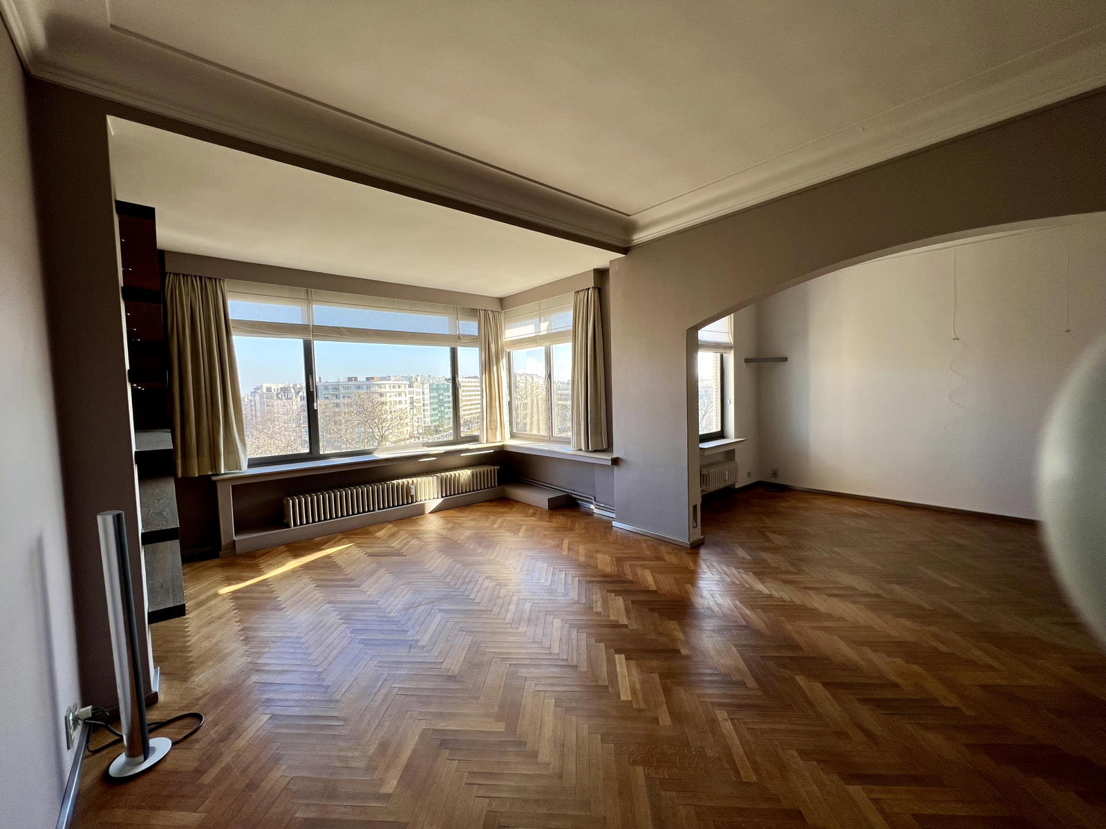 Situé au cinquième, sixième (et dernier étage) d’un immeuble des années 50, cet appartement duplex (ou deux appartements deux chambres) offre une vue imprenable sur le Square Montgomery. A proximité immédiate le parc de la Woluwe, le Cinquantenaire, la commerçante rue des Tongres, les transports en commun ainsi que de nombreuses écoles de qualité. Les institutions européennes ainsi que l’aéroport de Zaventem sont facilement accessibles.