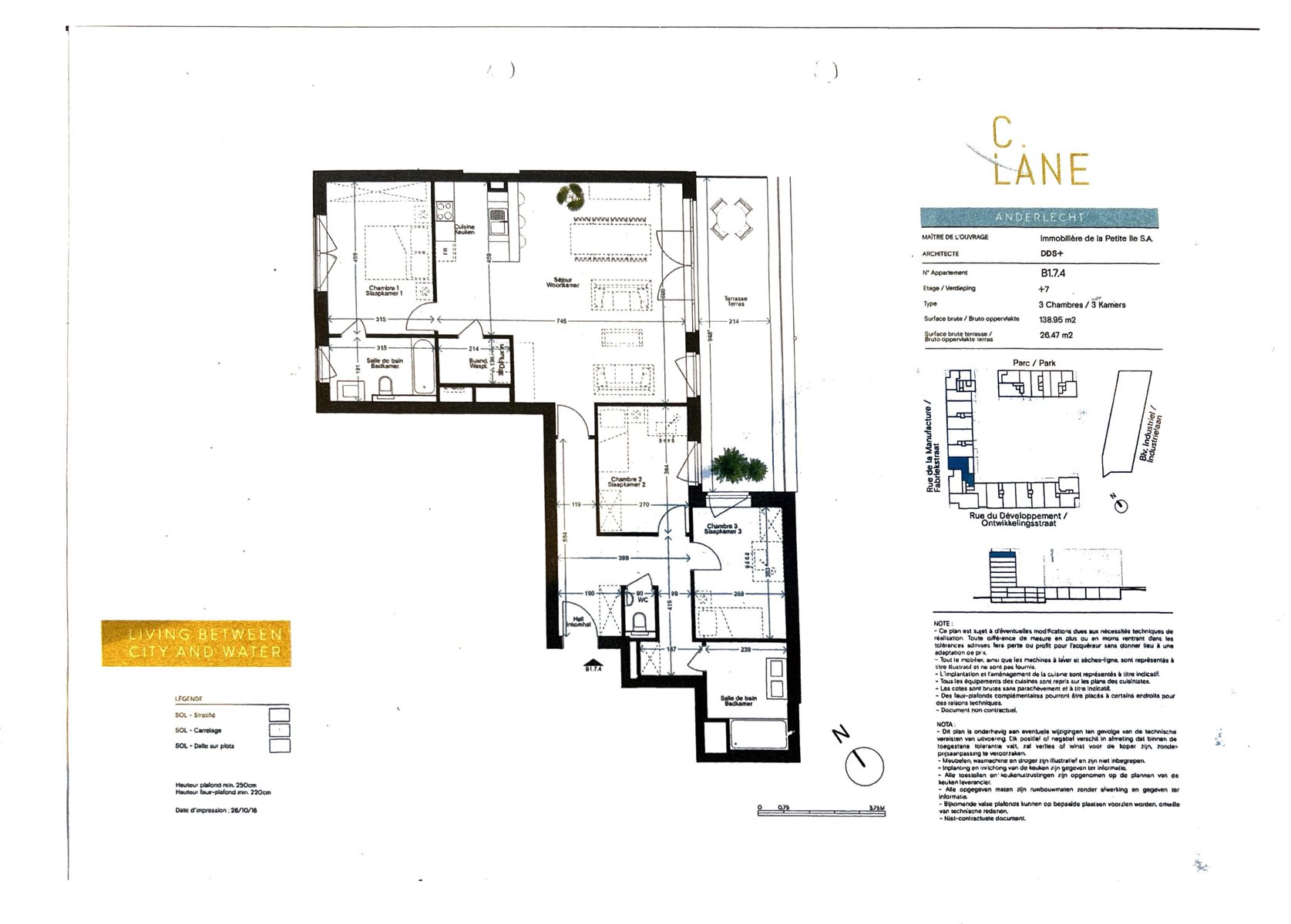 Anderlecht, au cœur d’une résidence récente construite en 2022, au 7ème étage sur 7, appartement de +/_ 139m2 de surface brute avec une terrasse de 27m2 orientée au Sud-est. Grand salon salle à manger avec une cuisine ouverte de +/_50m2 donnant sur la terrasse. Trois chambres. Salle de bain et salle de douche. Chauffage au gaz à condensation. Ventilation double flux. Buanderie. Au rez-de-chaussée, un jardin et espace commun dans l’ilot central. Une cave ainsi qu’un emplacement de parking (+20.000€). De nombreuses lignes de bus et commerces sont à proximité. L’accès vers la gare du midi ainsi qu’au ring est aisé. Provision charges communes de 95€ mensuels – Provision charges privatives chauffage et eau de 100€ mensuels. Certificat énergétique Peb A-.