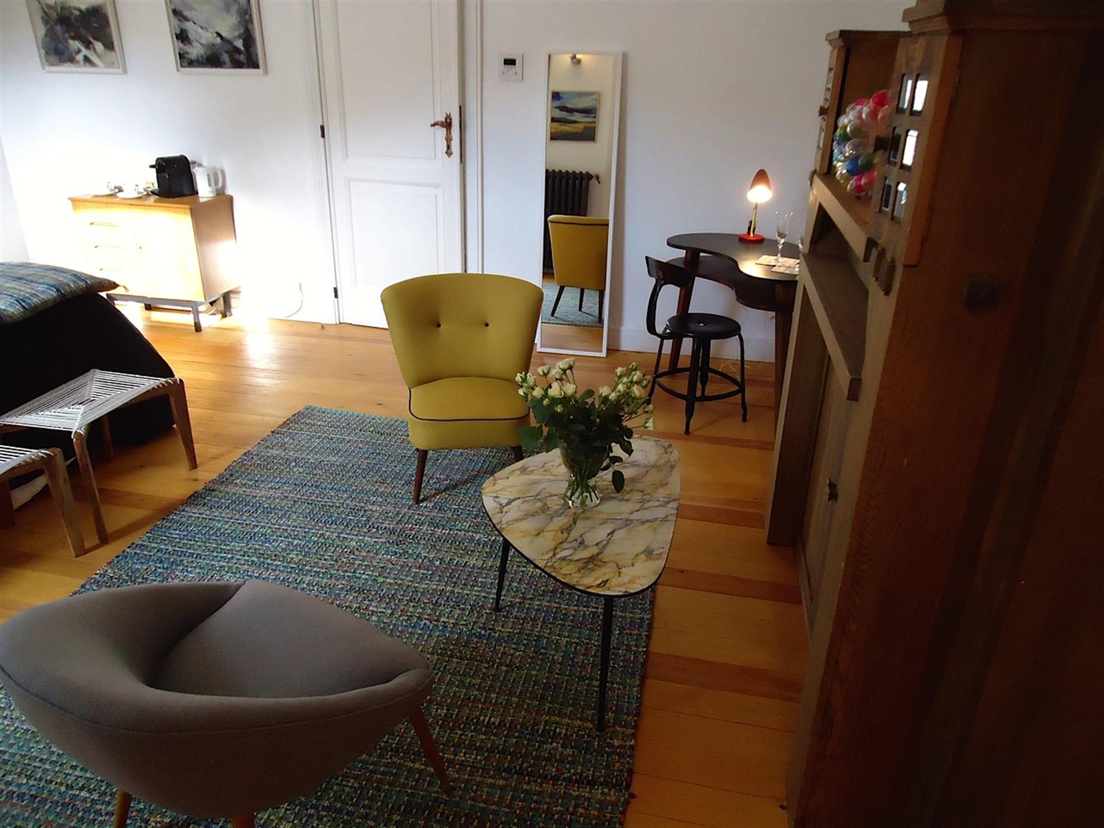 Cette maison de ville occupée en Maison d’Hôtes a été sublimée par un mobilier vintage ou actuel déclinant subtilement différents styles décoratifs.