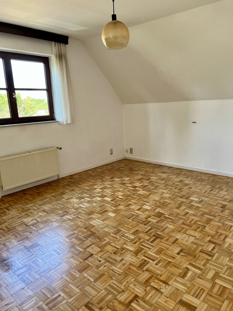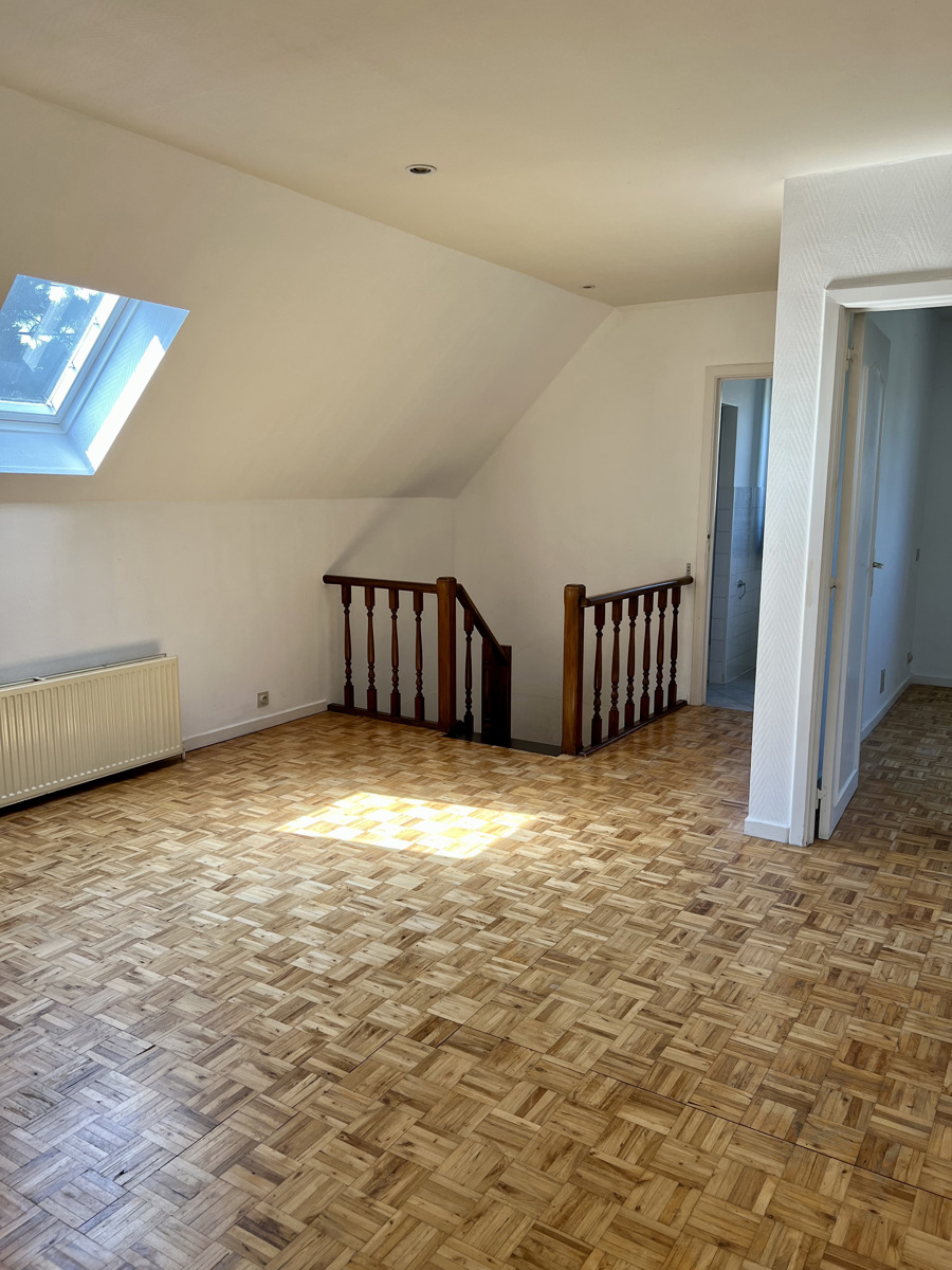 A l’étage, un espace de près de 20m2 offre de multiples possibilités d’utilisation.Quatre chambres à coucher, une salle de douche, une salle d’eau avec bain et douche. Au second étage, un grand grenier aménageable de près de plus de 25m2 de surface utile offre là aussi de nombreuses possibilités d’aménagement (chambres, pièce à vivre, espace de rangement, bureau ou salle de jeu pour les enfants). Le jardin se situe sur l’arrière de la maison.