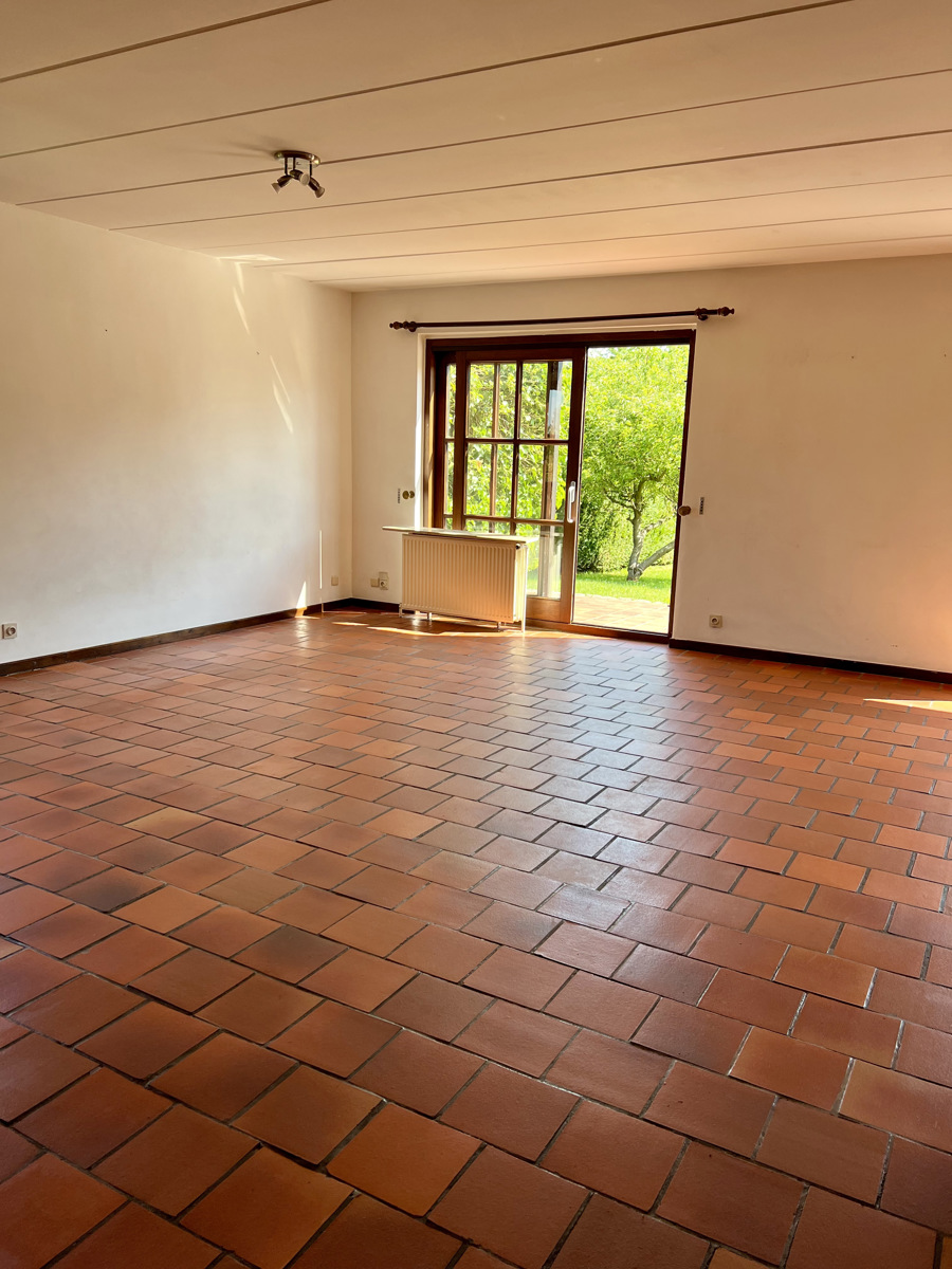 Au rez-de-chaussée, en entrant sur la droite la cuisine ouverte sur la terrasse, le salon salle à manger avec accès là aussi à la terrasse et au beau jardin privatif.Sur la gauche une toilette invité, la buanderie ainsi qu’un double garage.