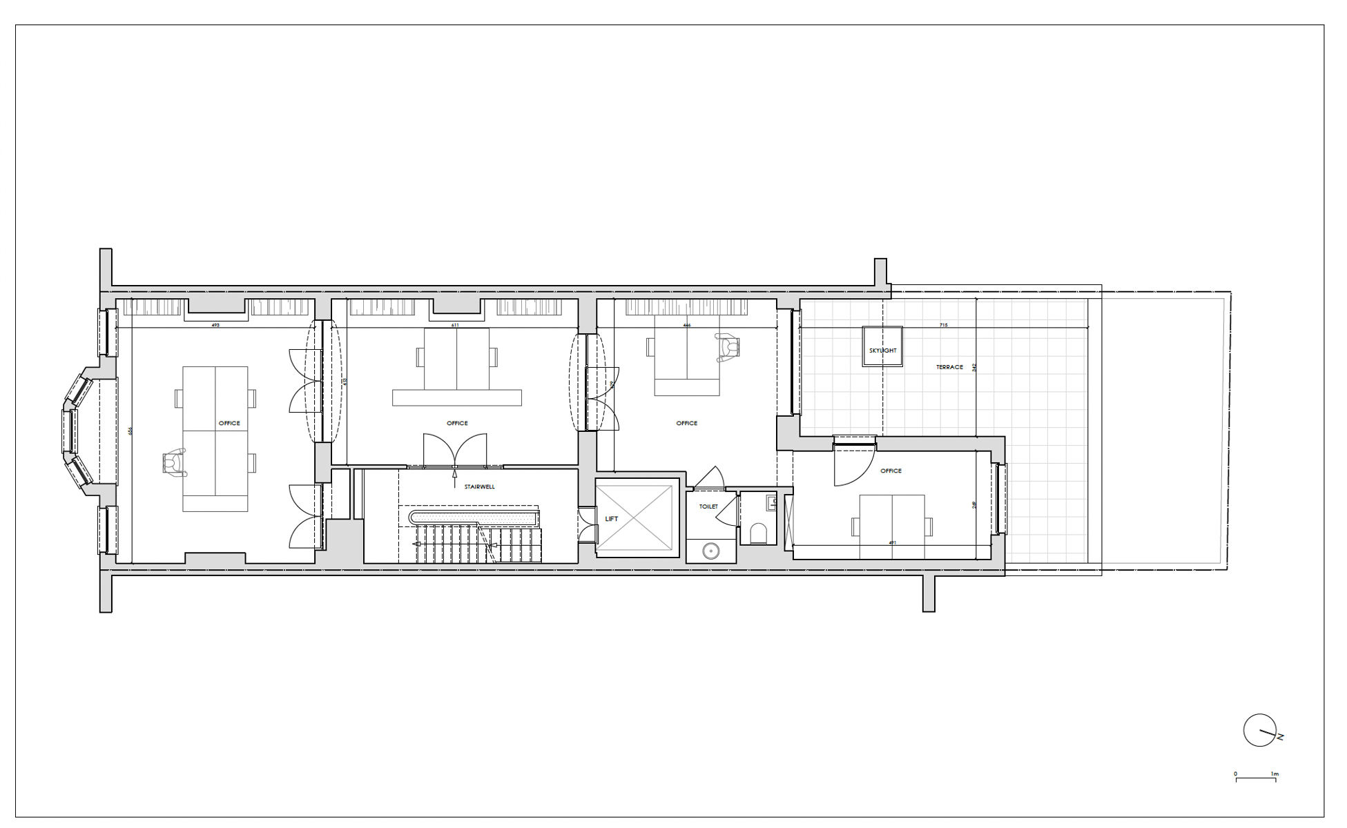 Il se compose de 3 étages de bureaux et de 4 appartements actuellement loués.