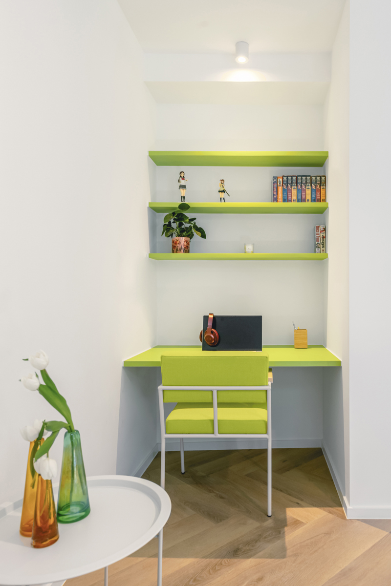 Quartier Blaes, à quelques pas du cœur historique de Bruxelles, ce projet a consisté en la remise à neuf complète de l’immeuble et de ses 6 unités réparties sur 3 niveaux entre studio et appartement 1 chambre au design colorés et moderne. Les appartement sont vendus meublés.