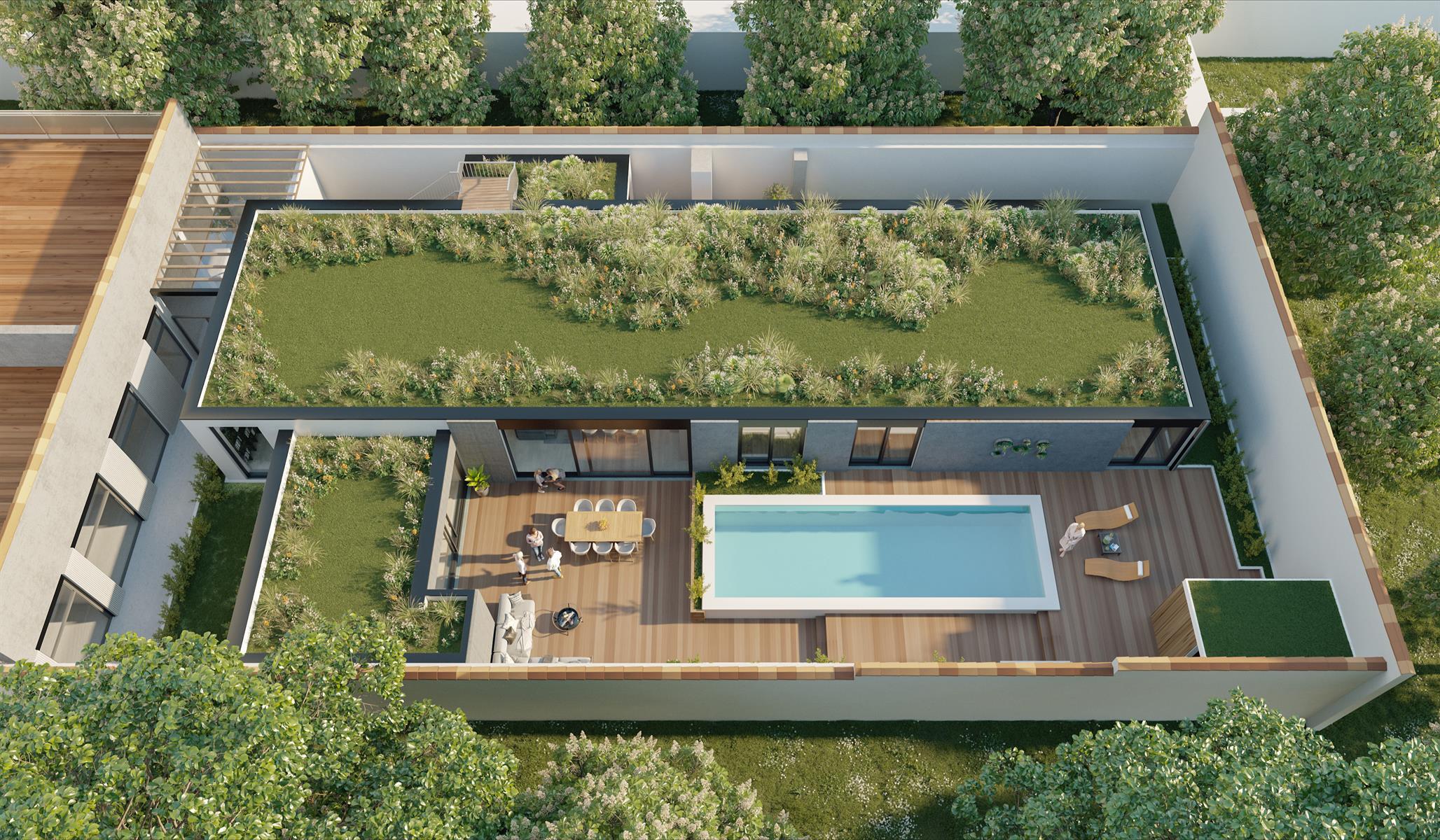 Forest limite Uccle, quartier recherché, projet neuf : loft haut de gamme de 650m2, 200m2 de terrasse avec piscine