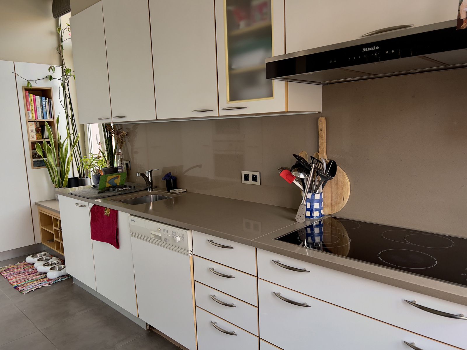 A louer, au premier étage d’une petite copropriété, appartement de 130m2, en entrant sur la gauche, le salon ouvert sur la salle à manger et la cuisine ouverte complètement équipée. Dans le hall, une toilette invité avec lave main. Sur l’arrière du bâtiment, deux chambres dont la plus grande avec terrasse. Une salle de douche avec grande douche et toilette.