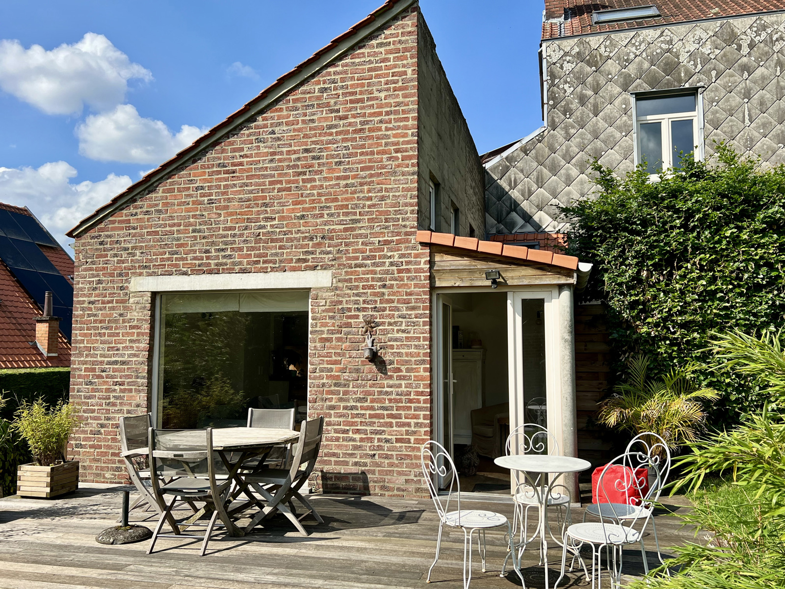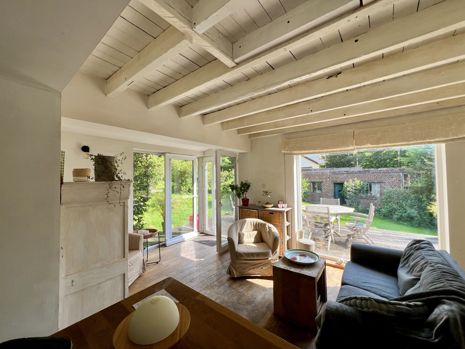 Du salon, l’accès vers la grande terrasse et le jardin est aisé. Le jardin est orienté au sud et profite donc d’un très bel ensoleillement. A l’arrière deux grandes remises dont la toiture a été complètement refaite