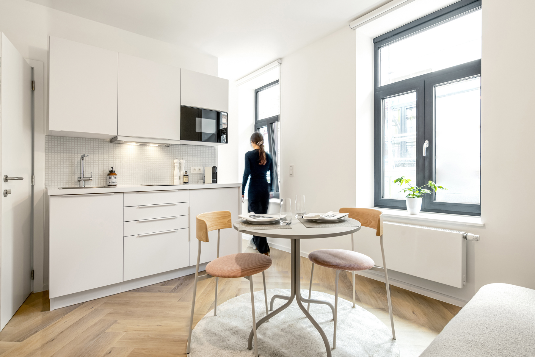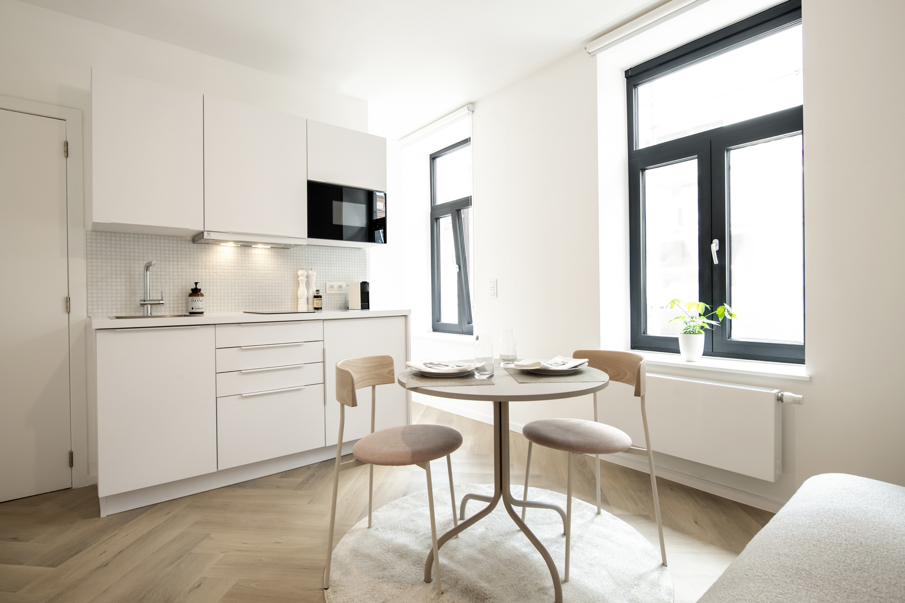 Quartier Blaes, à quelques pas du cœur historique de Bruxelles, ce projet a consisté en la remise à neuf complète de l’immeuble et de ses 6 unités réparties sur 3 niveaux entre studio et appartement 1 chambre au design colorés et moderne. Les appartement sont vendus meublés.