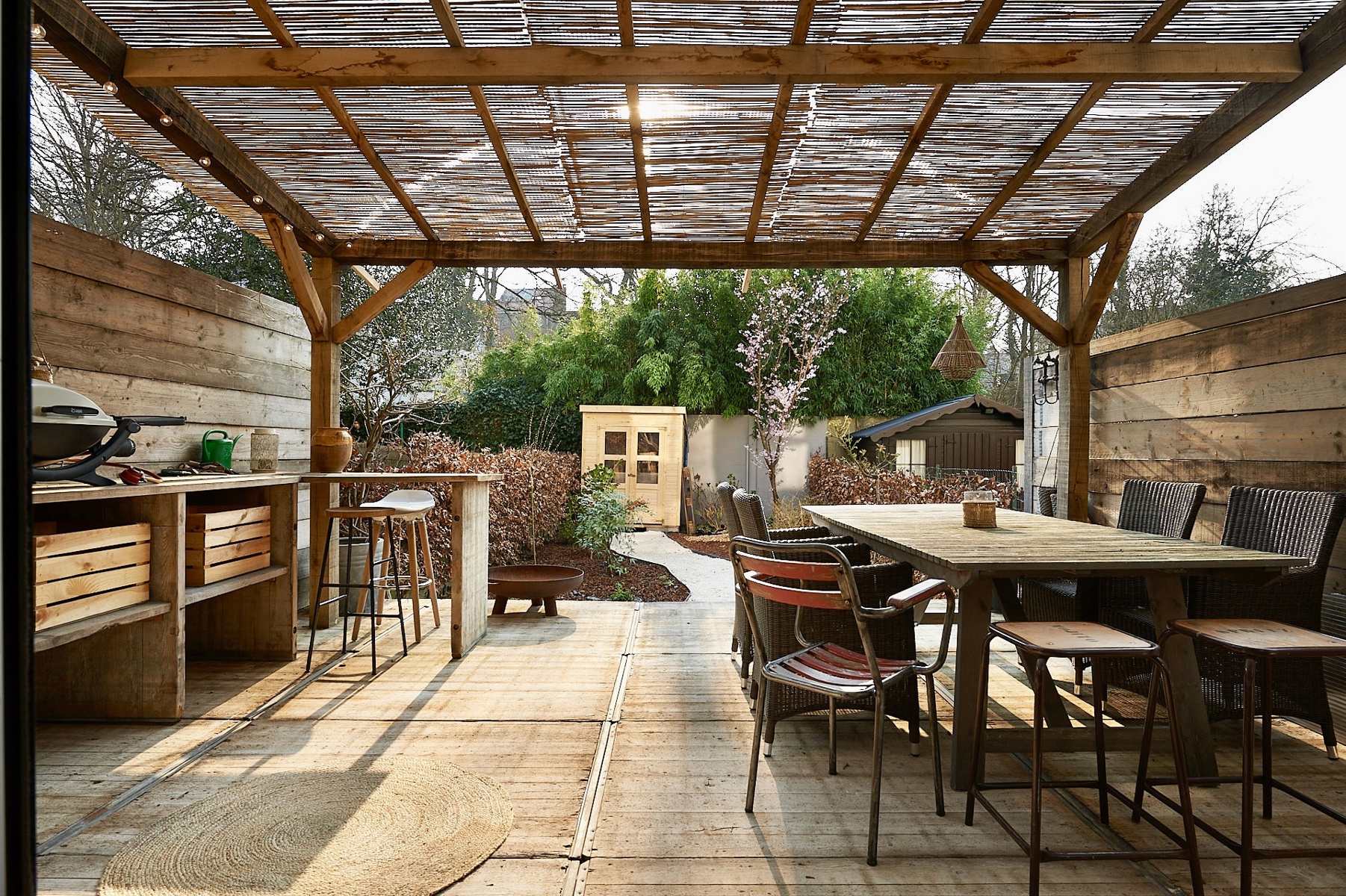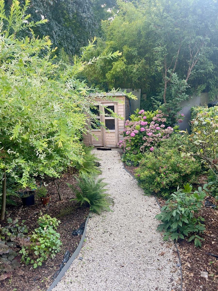 Au rez-de-jardin, donnant sur la terrasse avec pergola et le jardin orientée au Sud-Ouest, le salon, la buanderie avec espace de rangement, toilettes séparées.