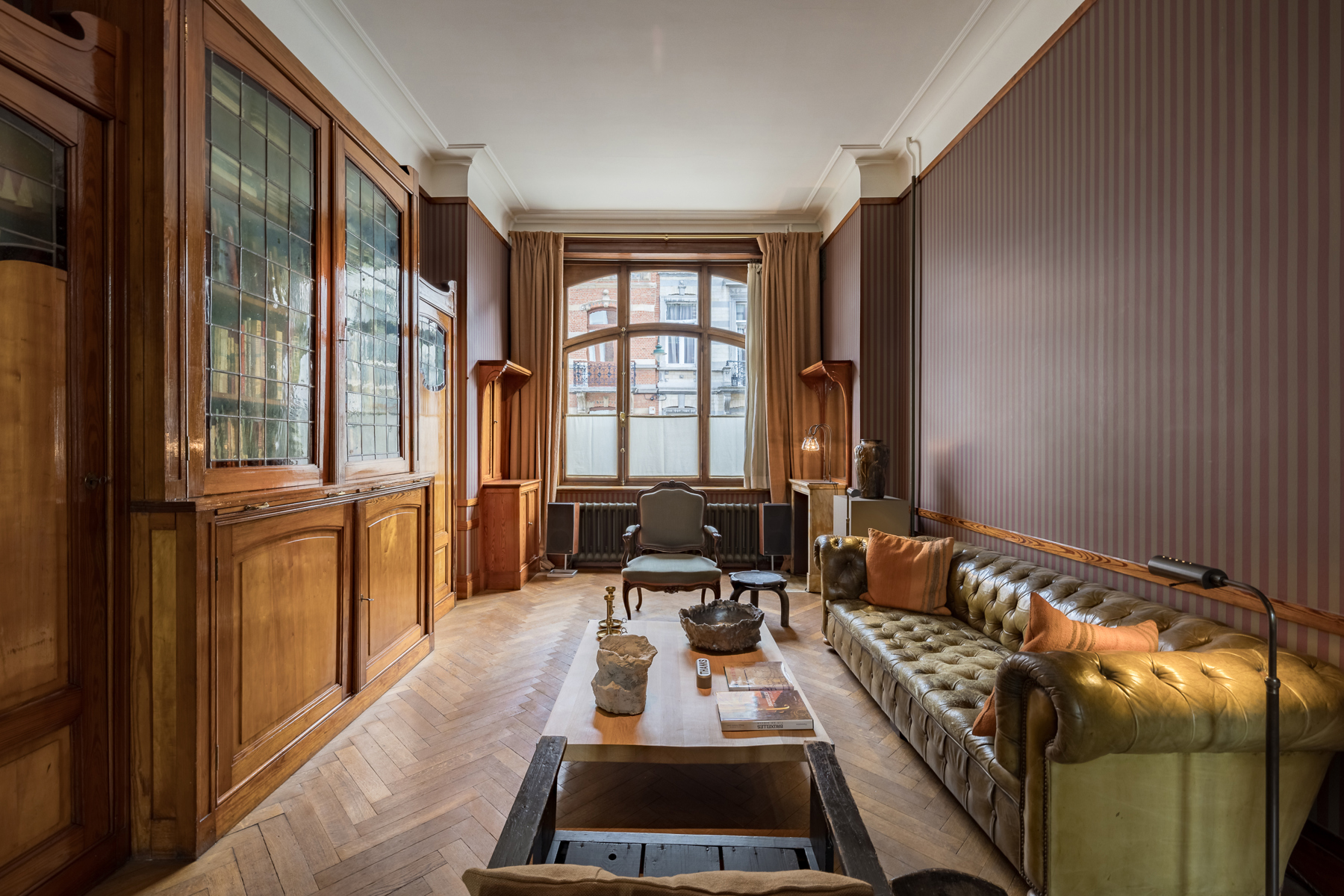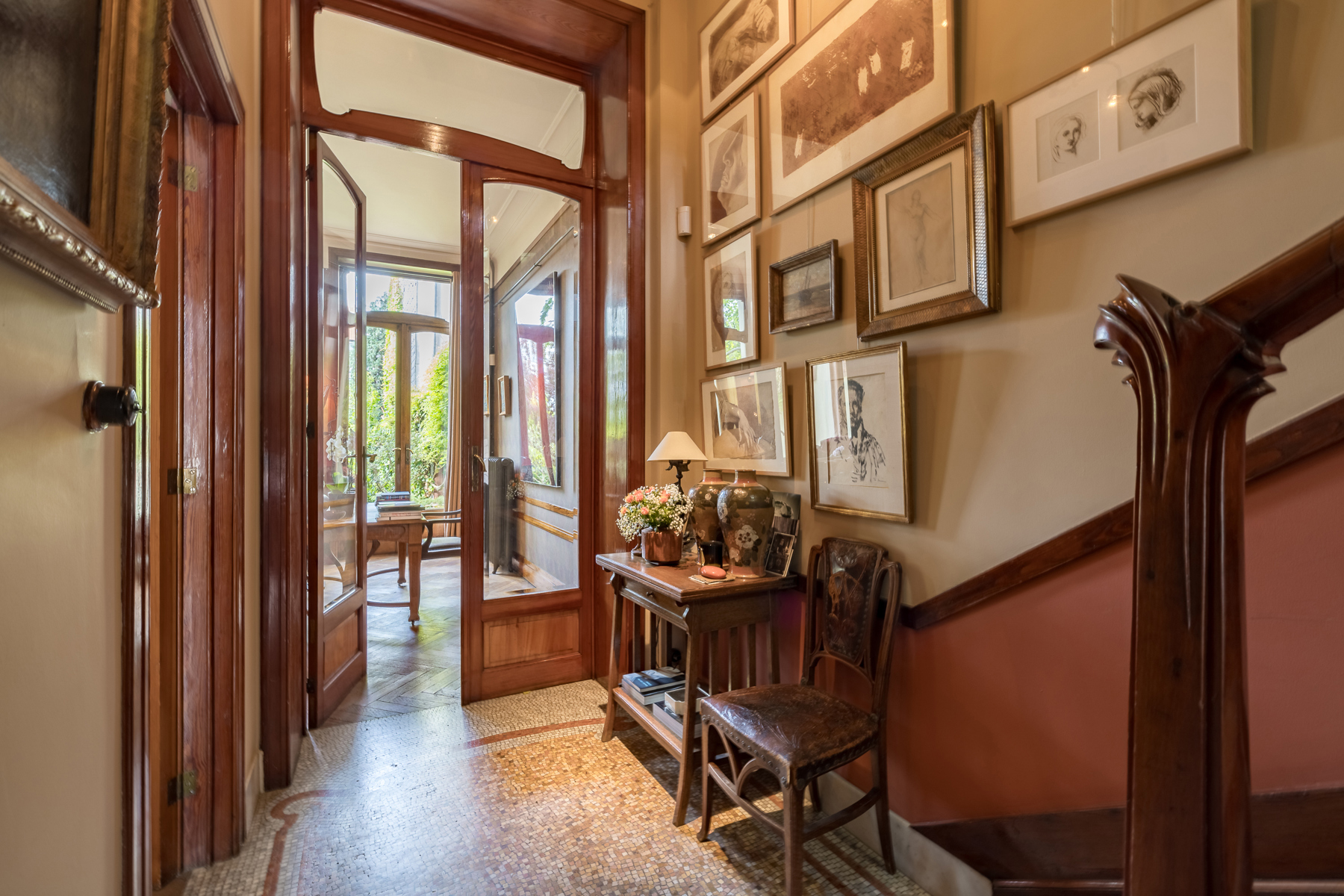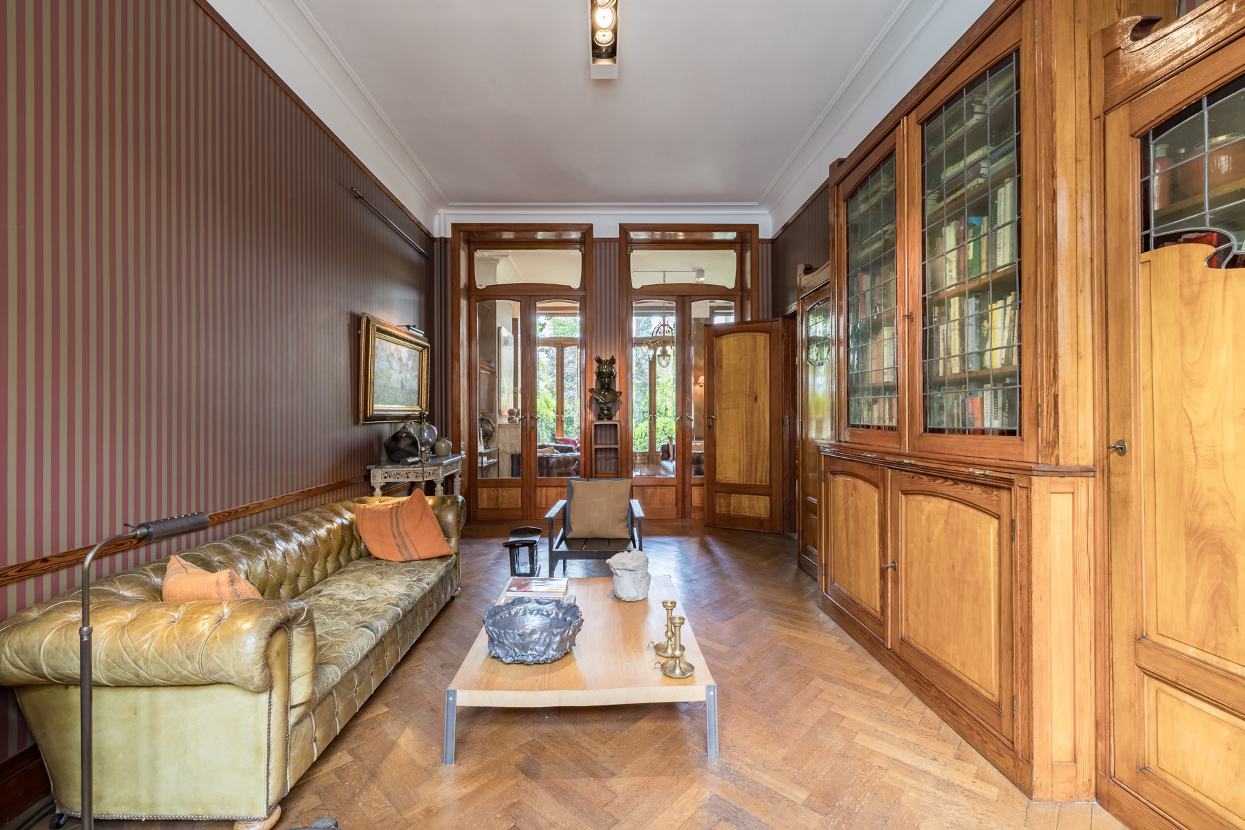 D’ une superficie de ±350 m², 4 chambres, 3 salles de bain, une terrasse et un jardin de 70 m² orienté au sud, la maison, répartie sur 5 étages comprend à l’entresol une cuisine et une salle à manger séparée. Au bel étage, deux salons dont l’un extrêmement lumineux, éclairé par de larges baies aux vitres transparentes et biseautées donnant accès directement à la terrasse et au jardin orienté au Sud.