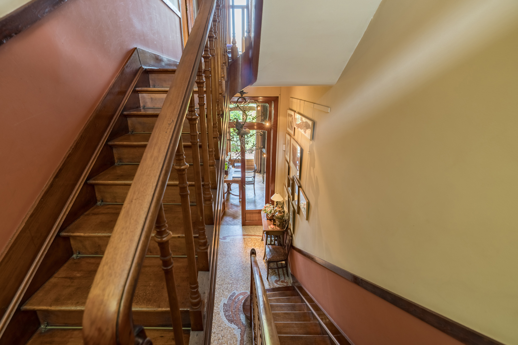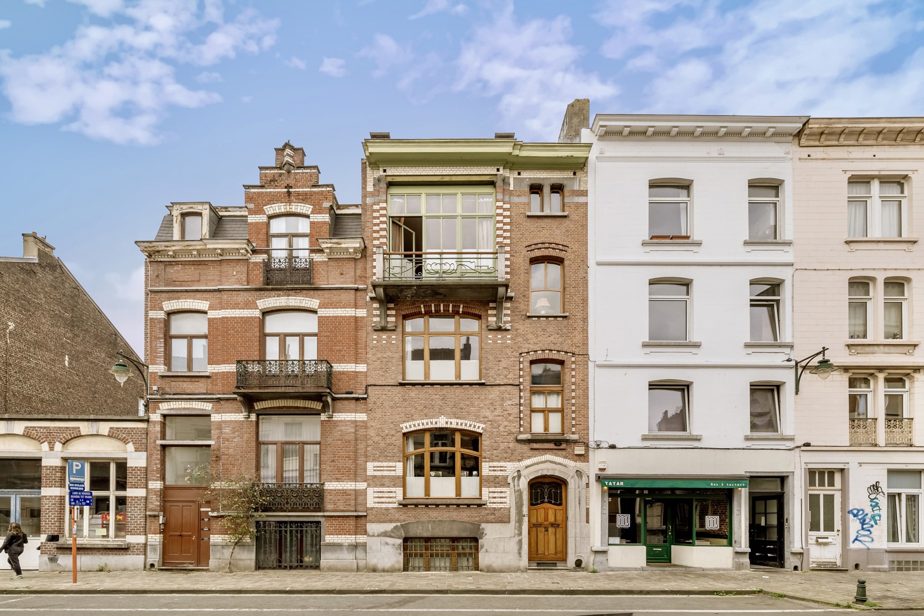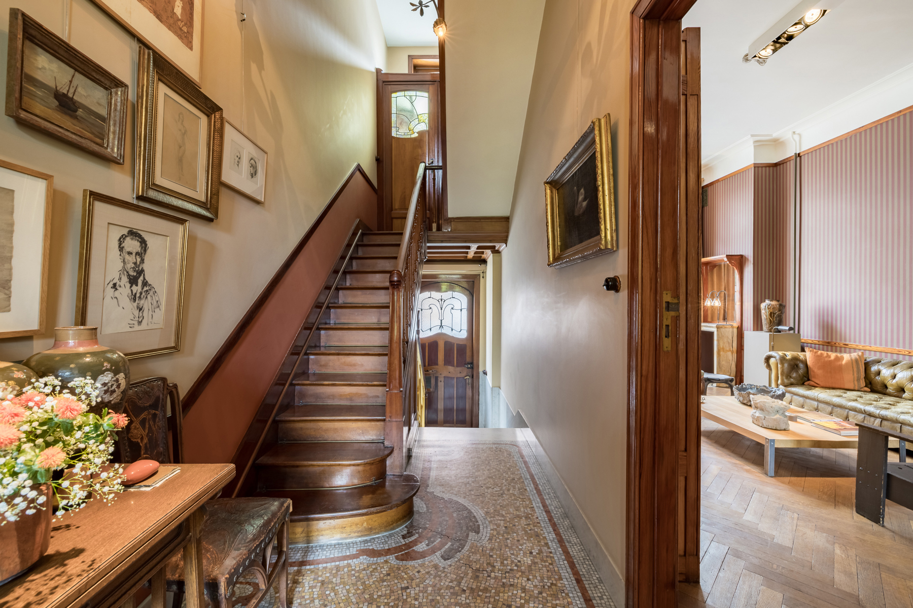 Pour la première fois de sa carrière Victor Horta utilisera la polychromie et animera la façade de brique rouge et blanche. Le coté plus luxueux est quant à lui apporté par les soubassements, mais aussi l’encadrement des portes, les joues enserrant le garde-corps, les consoles du balcon en pierre bleue. La boite aux lettres et le tirant de porte sont en bronze. A l’intérieur, d’abondants vitraux colorés, mosaïque de marbre au sol, escalier en bois d’acajou, rampe en métal doré, plancher de chêne, poignées de porte ouvragées mais aussi de nombreux meubles en pitchpain d’origine en parfait état.La maison a été classée en 1998 pour ses façades, la toiture ainsi que certaines parties de l’intérieur en ce compris le mobilier fixe par destination. Renseignements et visites au 0475/94 99 80 ou par email : stephane@stephaneschweitzer.be