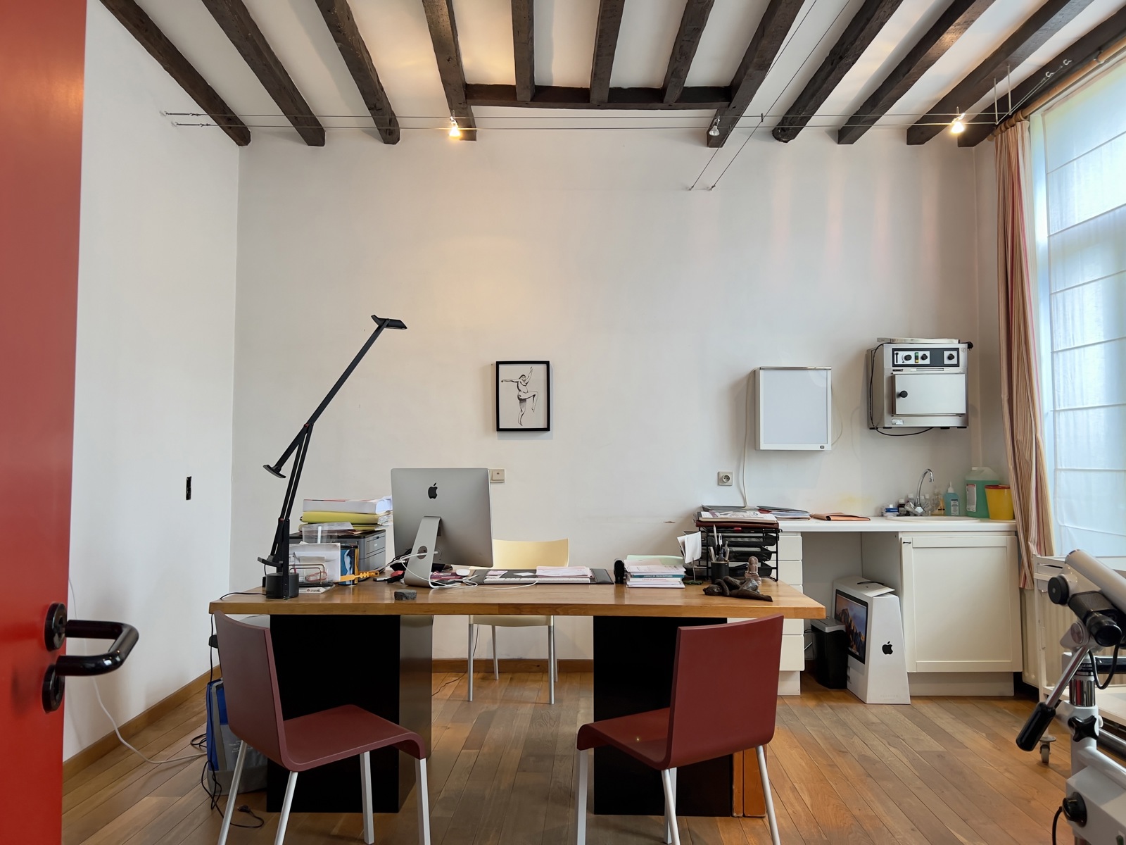 Op de begane grond, bij binnenkomst, bevindt zich een ruimte die tot voor kort (en al jaren) als dokterspraktijk werd gebruikt, met een kantoor, een wachtkamer en een apart toilet en met vele andere mogelijkheden.