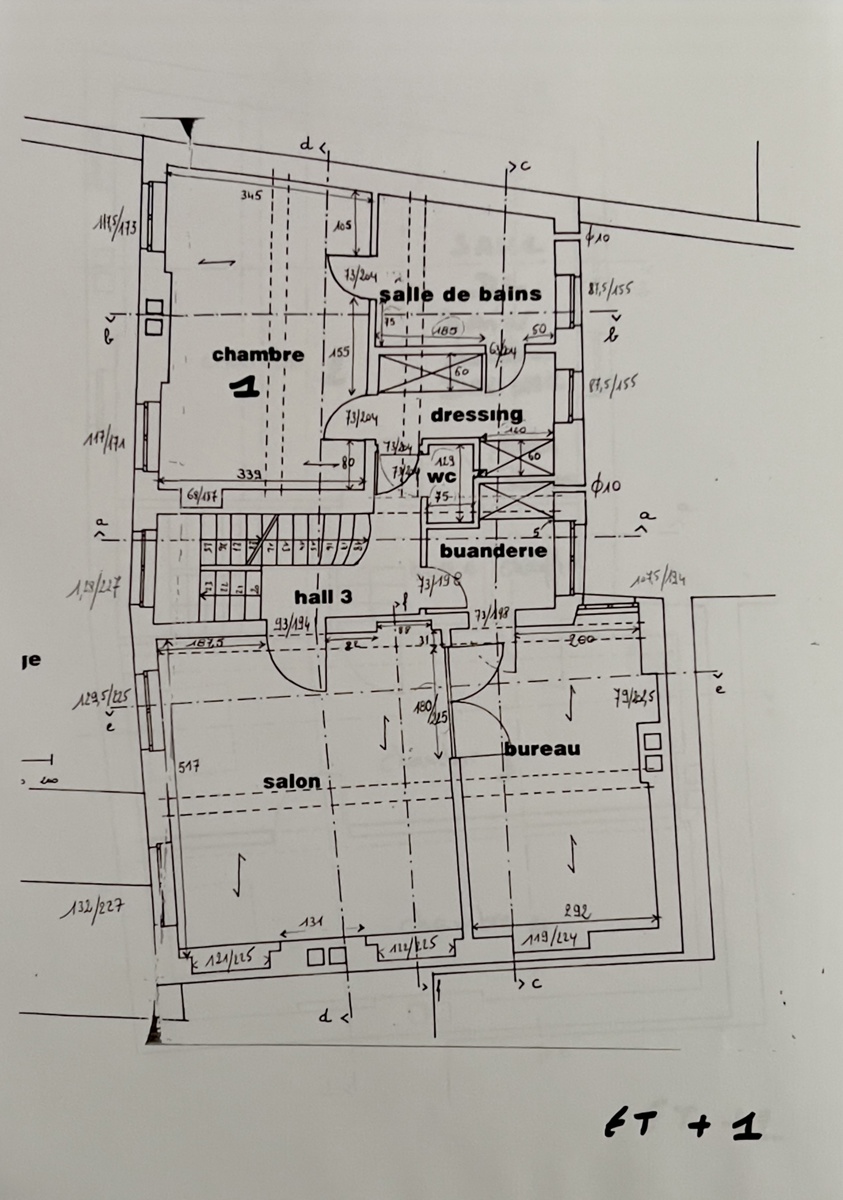 Boven, rechts, aan de tuinzijde, bevindt zich een grote woonkamer met cassette, evenals een kantoorruimte, een speelkamer of een bibliotheek. Links is er toegang tot de eerste slaapkamer (tuinzijde), de badkamer met douche, de kleedkamer, een apart toilet en de wasruimte.